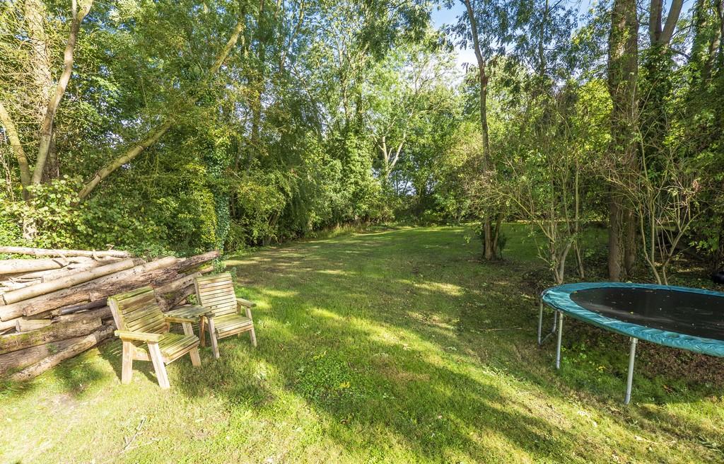 GARDENS: The rear gardens are a particularly highlight of this individual market opportunity with a substantial terrace with oak border immediately accessible via the open plan kitchen/dining room and embracing the southerly side aspect, well placed to enjoy the midday to evening sun. Beyond the terrace, a single expanse of lawn is on a rising gradient away from the property with an area of woodland beyond interspersed by various paths and walkways. The gardens are largely wild to the southern curtilage with a ditch to the north with a single-width bridge over with timber sleepers beyond rising to a further of expanse of lawn with post-and-rail fencing to the front elevation and fledgling planting to the rear.