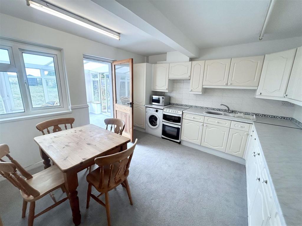 Kitchen/Diner - 11' 11'' x 13' 8'' (3.63m x 4.16m) - Lino flooring. Fitted-kitchen with matching wall base units. Sink drainer and gas cooker and electric oven. Double glazed window to rear aspect.