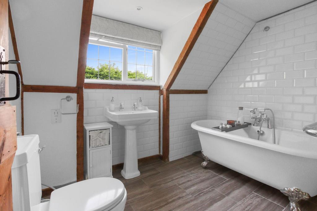 The property offers four well-proportioned bedrooms. The master bedroom is a sanctuary with an en-suite, which has been re-furbished with a large walk in double shower with rainhead shower, WC, wash hand basin and views over the moat and garden, built-in wardrobes, and a dressing room. The second bedroom provides an enchanting view over the garden and moat. All bedrooms are double-sized and abundantly lit with natural light and all with exposed beams.