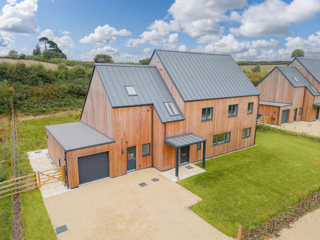 Each home is approx. 2755 sqft (inc garage) with a high-quality finish throughout. The four bedrooms and three bathrooms will provide comfort and style with living spaces to match. Thought has been given to the design, with the inclusion of a larder, utility, boot room and study bringing essential extra spaces into these modern homes. Each property has a large private garden, an optional paddock and all five properties will have the enjoyment of shared regenerated land, native woodland and a wildlife pond. This is a truly exceptional development in many ways.