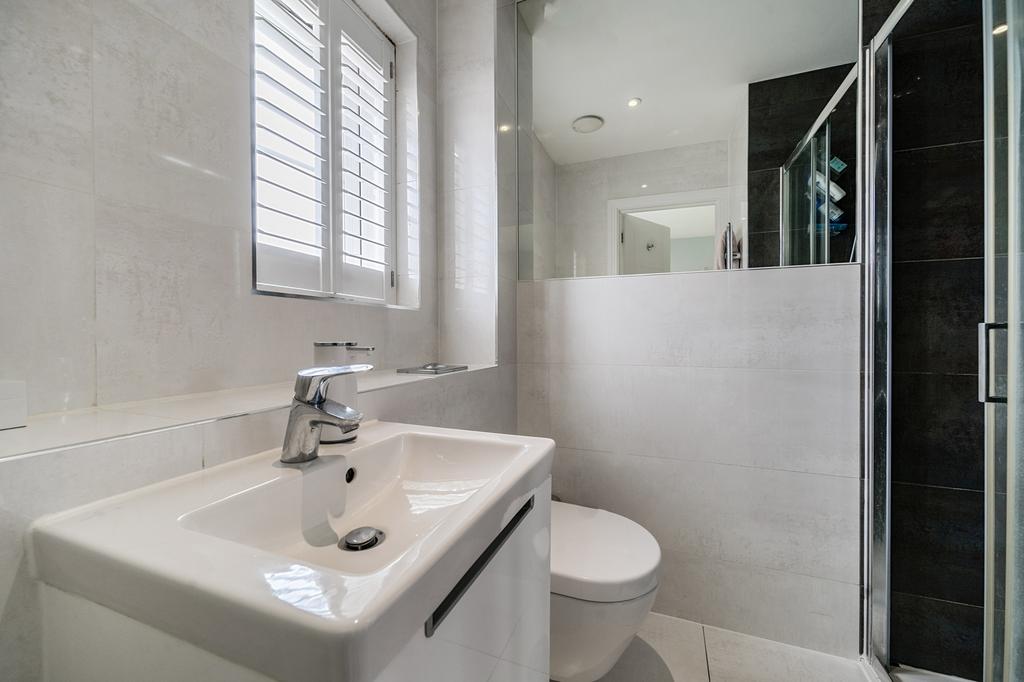 With a direct eye line through the property and into the garden, the entire ground level has under floor heating. The main living area is light and well-proportioned room, measuring more than nineteen feet, offering ample space to arrange large settees, a dining table and other furniture. A built-in cupboard provides storage. The room enjoys a pleasant outlook, with bifold doors leading out to the south-facing rear garden.