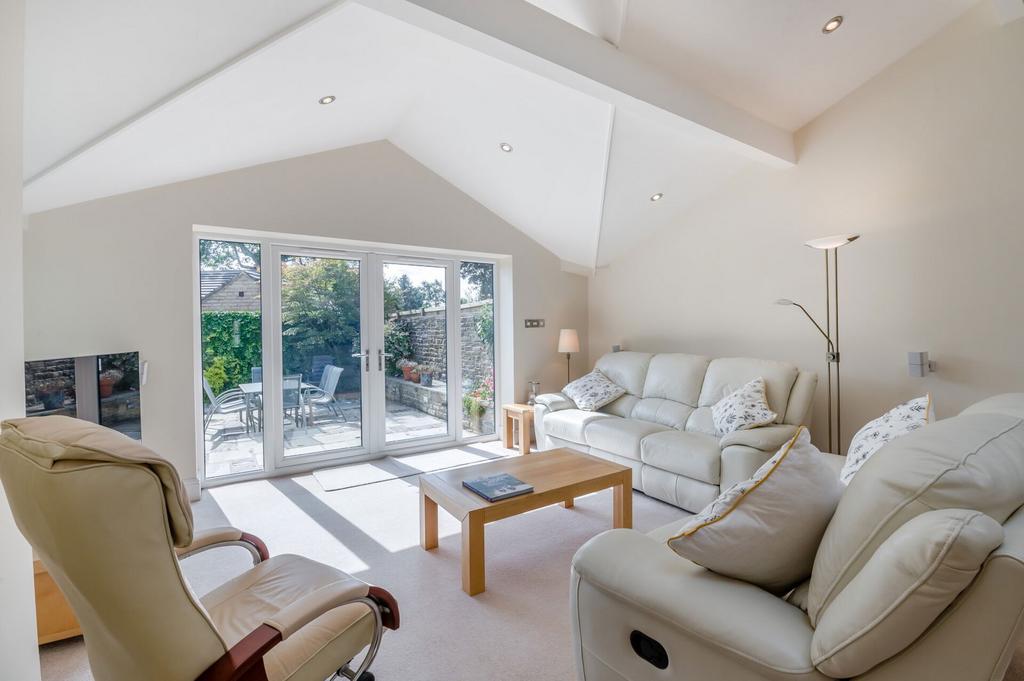 Designed with both comfort and connection in mind, the family room offers a versatile open-plan layout that seamlessly incorporates a sitting area and dining space, making it ideal for relaxed everyday living and informal entertaining. Bathed in natural light, the room enjoys a delightful outlook over the garden, with French doors opening directly onto the paved patio—perfect for al fresco dining, summer gatherings, or simply enjoying the tranquillity of the outdoors.