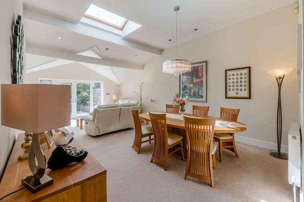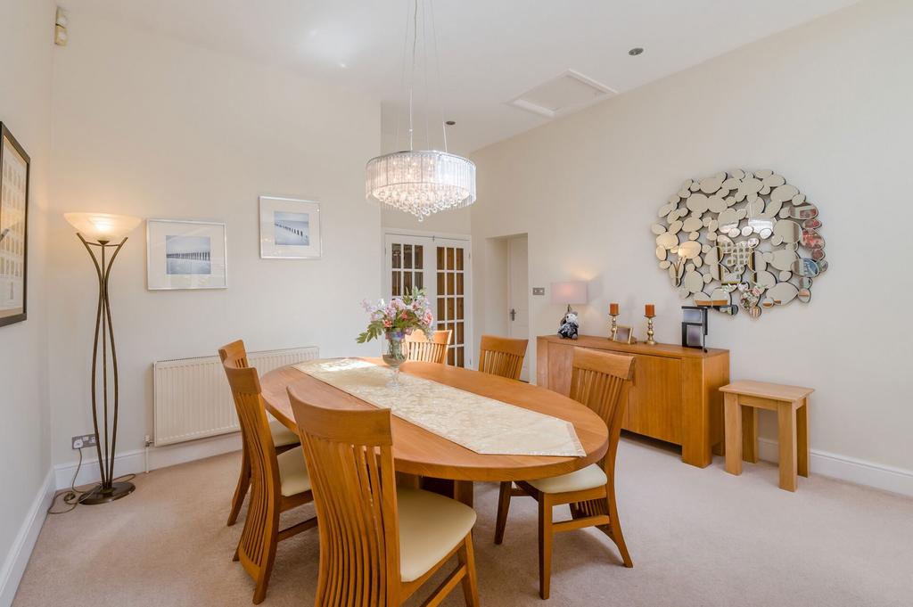 At the heart of the room, there’s ample space for a central family dining table, creating a natural focal point where conversations flow as easily as meals. Additionally, there is a separate utility room and WC located within a more informal entrance at the rear of the property, also offering cloakroom storage.