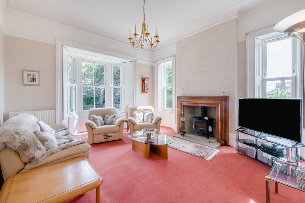 At the heart of the room a log-burning stove adds warmth and character, offering a cosy focal point for winter evenings and enhancing the room’s timeless charm.
