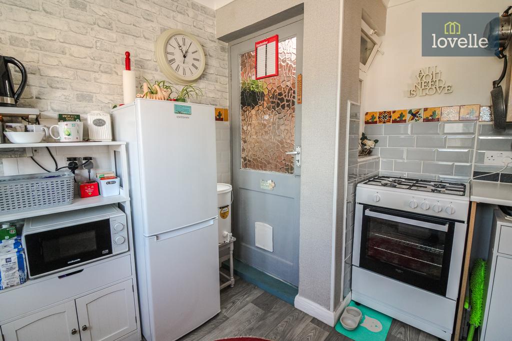 UPVC double glazed window to the front elevation, access to the property is up three steps and through a uPVC entrance door which opens to the kitchen. The kitchen has been fitted with a range of wall and base units with complementary worksurfaces incorporating a single bowl stainless steel sink unit with drainer and modern brick style tiling to splash areas. Gas and electric cooker points. Plumbing for washing machine and space for under counter fridge. Coving to the ceiling. Wall mounted electric radiator. Hardwood door opening to the rear sheltered courtyard space.