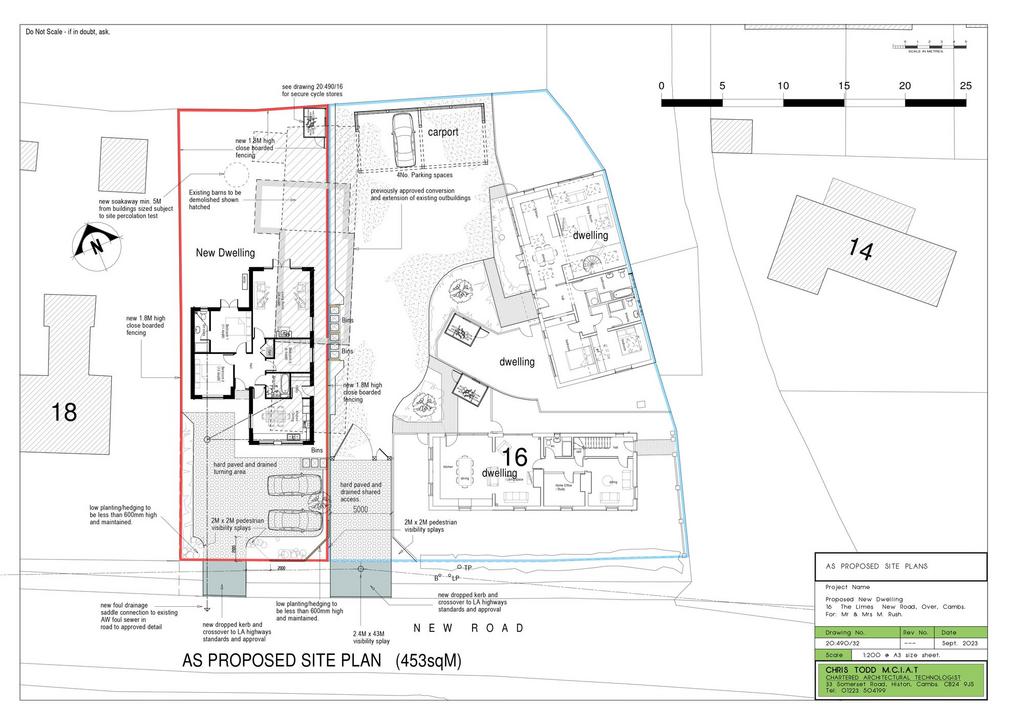A single building plot with planning for a three-bedroom detached bungalow. Full planning documentation can be viewed using Ref. No:24/03110/FUL at South Cambs Planning Portal.
