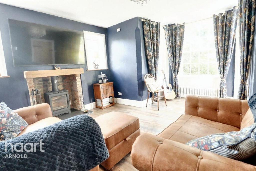 Two UPVC double-glazed windows and a feature wood-framed sash bay window, wood burning stove, wooden lintel and tiled hearth, TV point, two radiators.