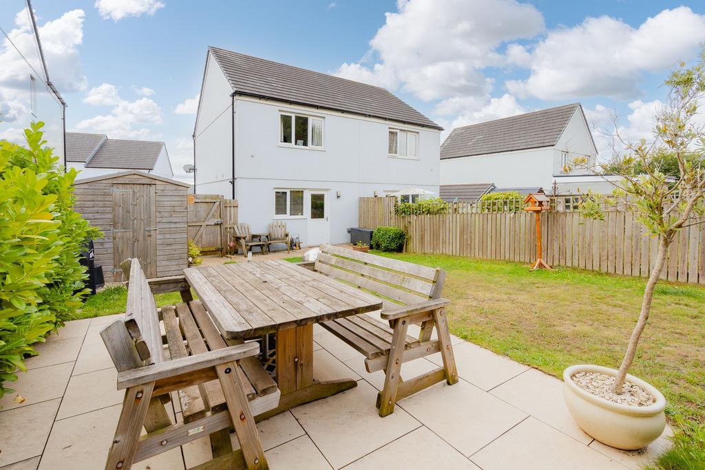 Outside to the front is lawned with some ornamental bushes. The generously sized drive has parking for at least two cars with level access that leads through a gate to the rear of the property. The main garden is mostly laid to lawn and is a great size for a modern house. The plot size also provides potential to extend the property (STPP). There is a lovely porcelain slab patio area perfect for outdoor dining in front of the quality built, generously sized summer house. There is an additional garden shed and BBQ area and another small patio / seating area by the back of the house, perfect for early morning breakfast. This area includes a double electricity socket and water tap. The garden also has a small vegetable plot and some trees /shrubs. To the rear of the garden there are lovely views across to Dartmoor.
