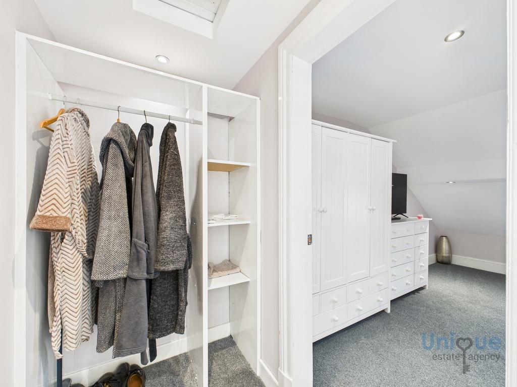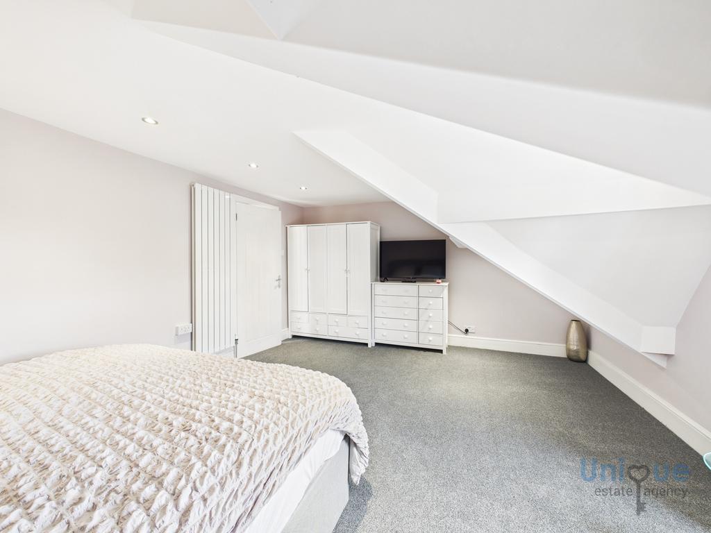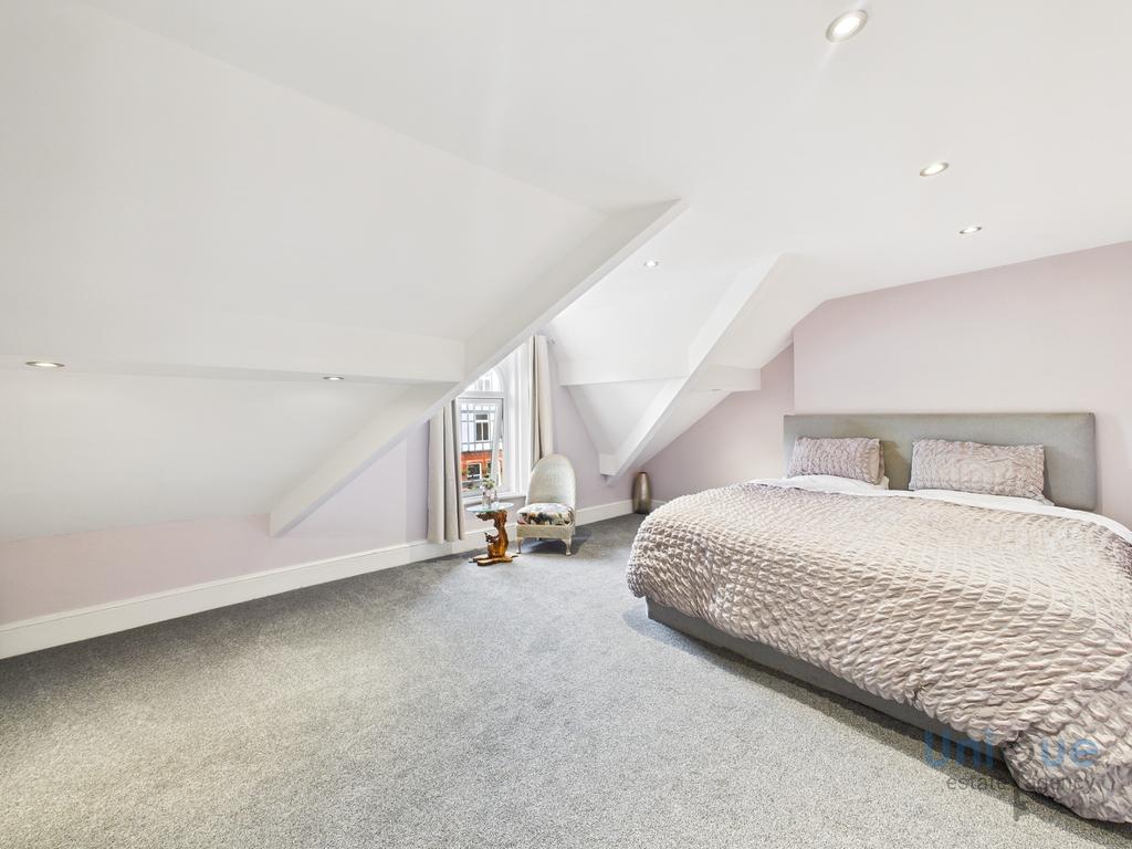 Stairs from the first floor landing lead up to the second floor, a recently fitted velux window provides natural light. There is an exceptional size bedroom with space to be used as a suite with sitting area. There is a 2nd large bathroom on this floor, a 3 piece suite consists; bath, double wash hand basin with vanity unit, toilet. Velux window.
