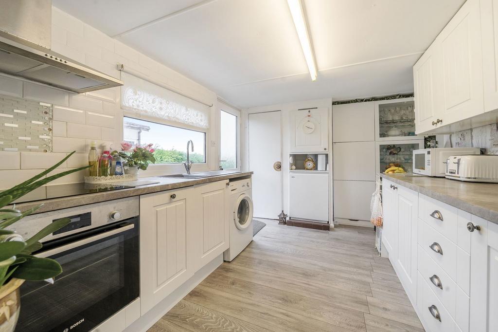 The kitchen has a range of modern matching wall and base units with an integrated electric oven and electric hob with a cooker hood/extractor fan over, an integrated dishwasher, space and plumbing for a washing machine, space for a fridge/freezer, a floor mounted boiler with a storage cupboard to the side and there is a double-glazed window to the rear, a double glazed door as well as a stainless steel single bowl inset sink unit with a single drainer.