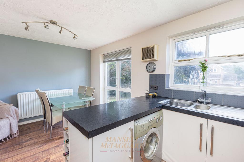 Leading through to the open plan kitchen/diner, there is ample space for a four-to-six-seater dining table and chairs with patio doors opening out to the rear garden. The kitchen is fitted with a range of wall and base units alongside space for a freestanding fridge freezer and plumbing for a washing machine.