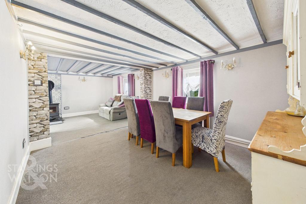 Access comes to the very front of the home where you will then find yourself in a large entrance lobby laid with authentic tiled flooring granting access to all living accommodation within the home. Immediately turning to your left, a secondary entrance porchway will greet you laid with tiled flooring, this space leads you into a room currently used as the home gym however, would make the ideal snug, family room, study or potential ground floor bedroom for those seeking multi generational living. Back into the main entrance way and turning to your right you will find yourself within the main living accommodation of the home in the form of a multi aspect L-shaped living area comprising the sitting and dining rooms. Initially the carpeted flooring leaves more than enough room for a formal dining table whilst the sitting room suite emerges towards the end of the room featuring wood burning stove and uPVC double glazed French doors leading you directly onto the rear garden patio. The kitchen sits towards the rear of the home, complete with a wide array of wall and base storage units giving way to space with plumbing for freestanding appliances and double glazed windows overlooking the rear of the home. Through from here the three piece bathroom suite can be found complete with a fully tiled surround and flooring. The room features a rainfall shower head and glass screen mounted over the bath with tall heated towel rail. The very rear of the home offers a handy utility space where the plumbing can be found for washing machine and tumble dryer and rear access door taking you into the garden.