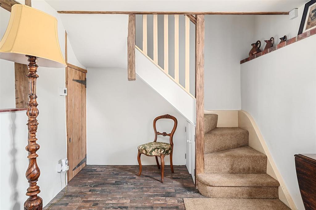 Description - The accommodation comprises, entrance, entrance porch opening to one of three reception areas with a beautiful inglenook fireplace, second reception area with further inglenook fireplace and log burning stove both reception rooms have stunning views on to Henfield Common. Newly fitted kitchen modern yet country style kitchen with integrated washing machine, integrated fridge/freezer, oven, composite sink and timber worksurfaces. Off the kitchen is the third reception/dining room. The entire ground floor has a raised brick floor with quarry tiles and has been fitted with a modern under-floor heating system.