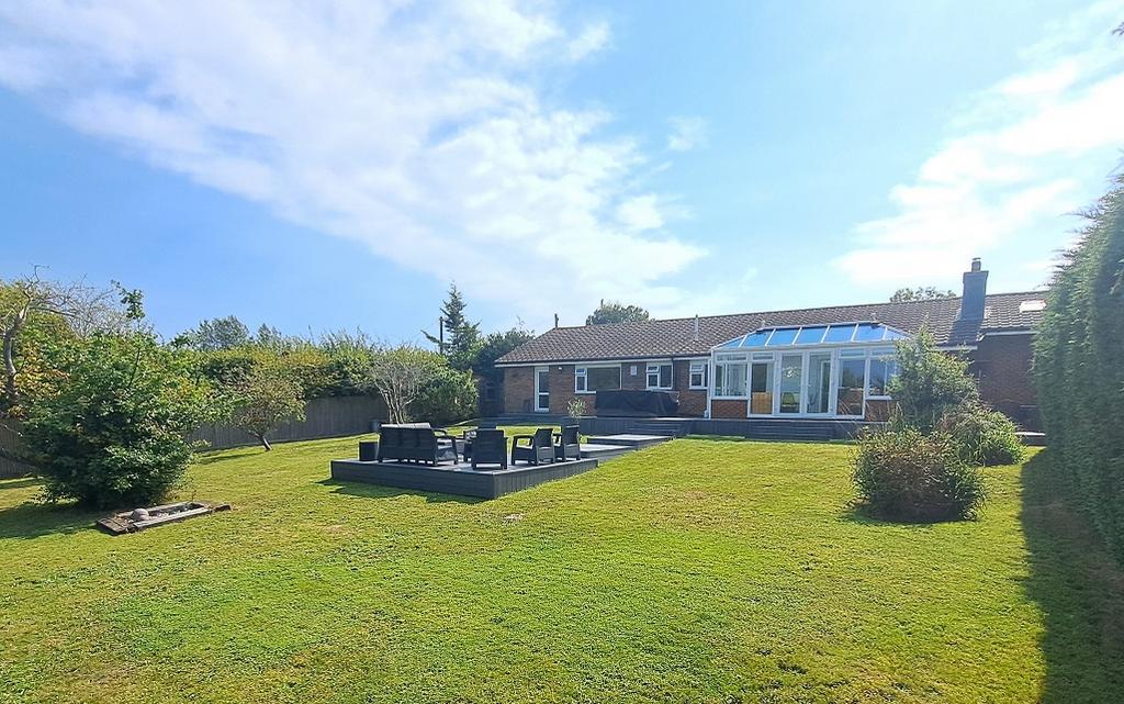 A rarely available and very spacious modern detached bungalow of individual design, occupying a double plot with generous accommodation including 5 double bedrooms (1 en suite) and 2 reception rooms. Vendors Suited. Viewing highly recommended.