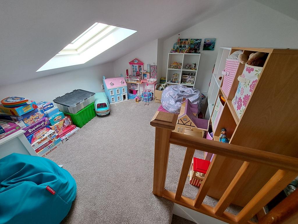 Featuring a vaulted ceiling and also a staircase which leads up to a 1st floor galleried mezzanine area ideal as a study / play area which has a double glazed Velux type window to the rear providing impressive far reaching views. Double radiator. Three ceiling lights. Large UPVC double glazed window to the front with a fitted wooden blind.