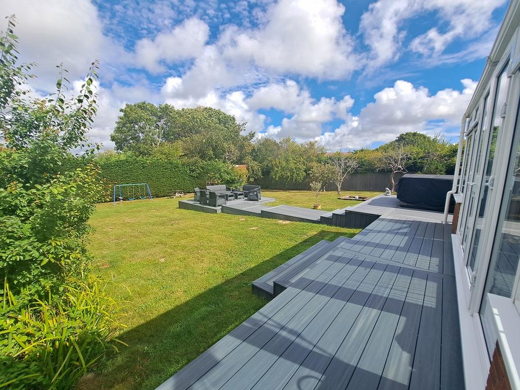Laid mainly to lawn with flower and shrub beds. Various mature trees including apple and pear trees. Outside security light. Outside water tap. Outside power points. Feature Treehouse. Impressive approx. 85 square meters of composite decking with 50 meter LED rope light. Sandstone paved patio area. Three sheds. Useful log store for the open fire. Fenced boundaries. Conifers. Side access gate. Proper outdoor socket for Hot Tub.