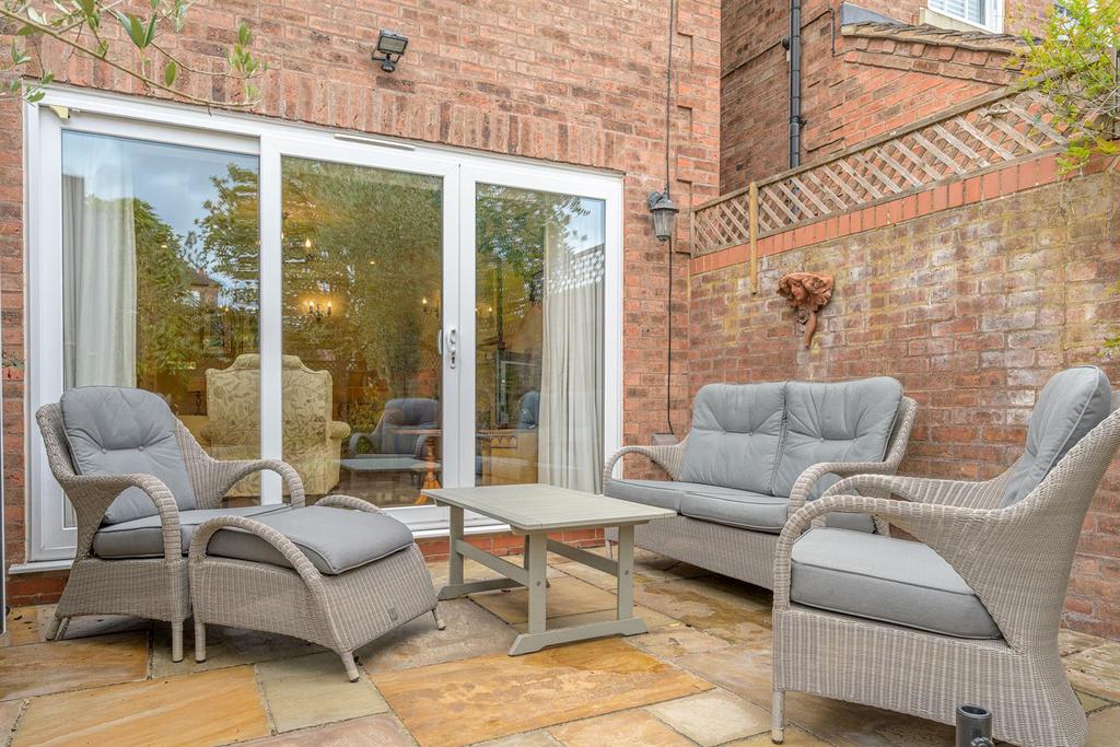 Garden - With patio doors from the lounge and double doors from the kitchen/ breakfast room leading to a patio seating area, a dwarf wall and further patio area beyond, a garden room and gated side access.