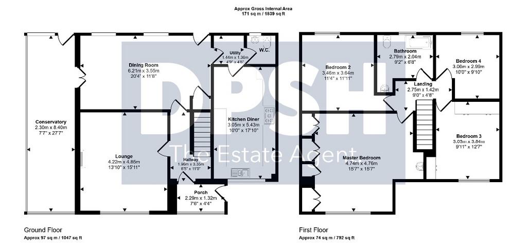 A welcoming porch opens into the spacious hallway, leading into the large lounge with a feature bay window and ample space for family gatherings. The fully fitted kitchen diner provides a well-equipped hub, complete with modern units, integrated appliances, and space for informal dining. To the rear, the dining room spans the width of the home, perfect for entertaining, and flows seamlessly into the bright conservatory overlooking the garden. A useful utility room and ground floor WC complete this level.