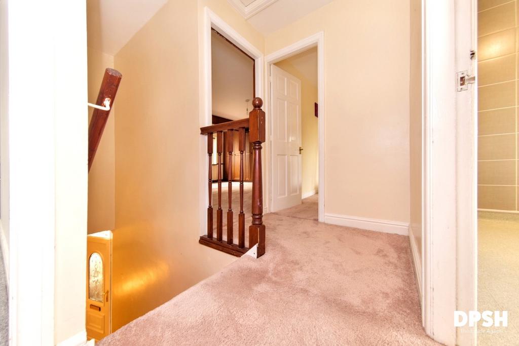 The first floor continues the theme of space, with four well-proportioned bedrooms arranged around the landing. The master bedroom is a highlight, offering fitted wardrobes across one wall and a modern en-suite. Bedrooms two and three are generous doubles, while bedroom four is also well sized, making the home perfect for growing families. The house bathroom is finished with a modern white suite.