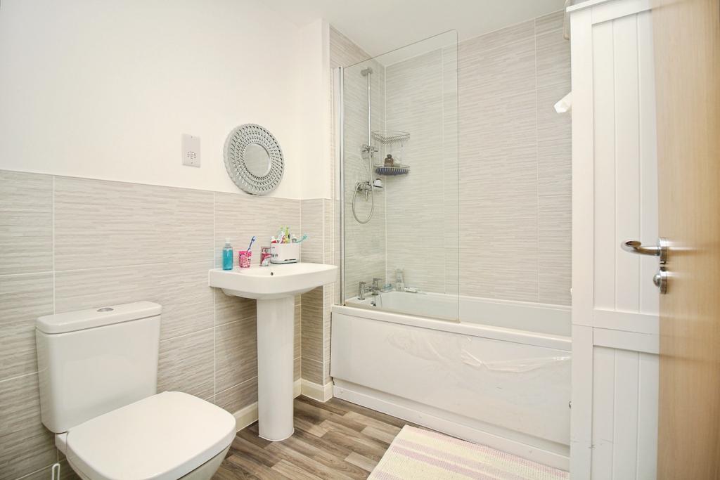 Moving upstairs, a landing gives access to two full width bedrooms, both neutrally decorated and flooded with natural light by two double glazed windows. The family bathroom is fitted with a contemporary three piece suite comprising a bath with shower over, wash hand basin and wc, with complementary tiling. A staircase rises to the second floor.