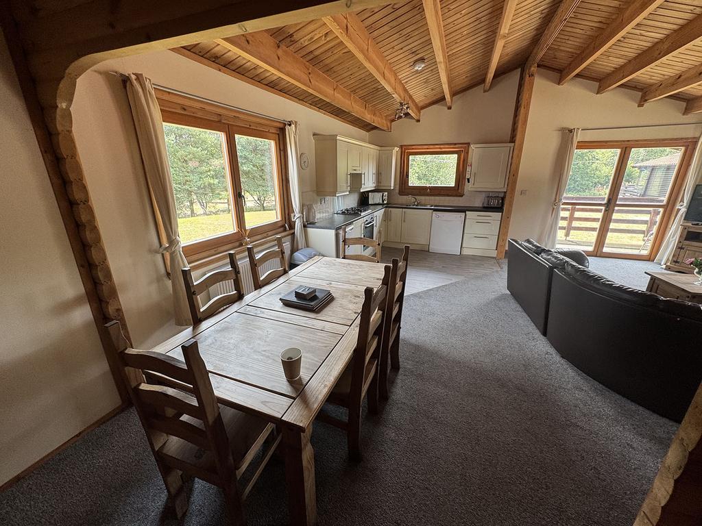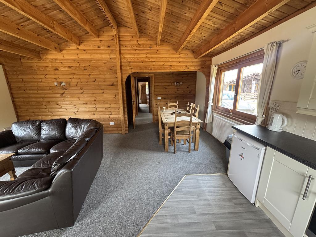 This spacious three-bedroom log cabin, built in 2006 by Pine Lodges UK, offers comfortable living in a peaceful country park setting. The lodge features a large open plan lounge and dining area with a fully fitted kitchen, creating a sociable space for relaxing or entertaining.