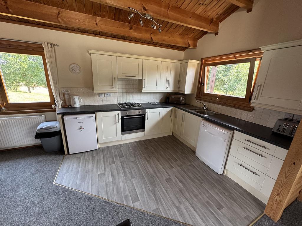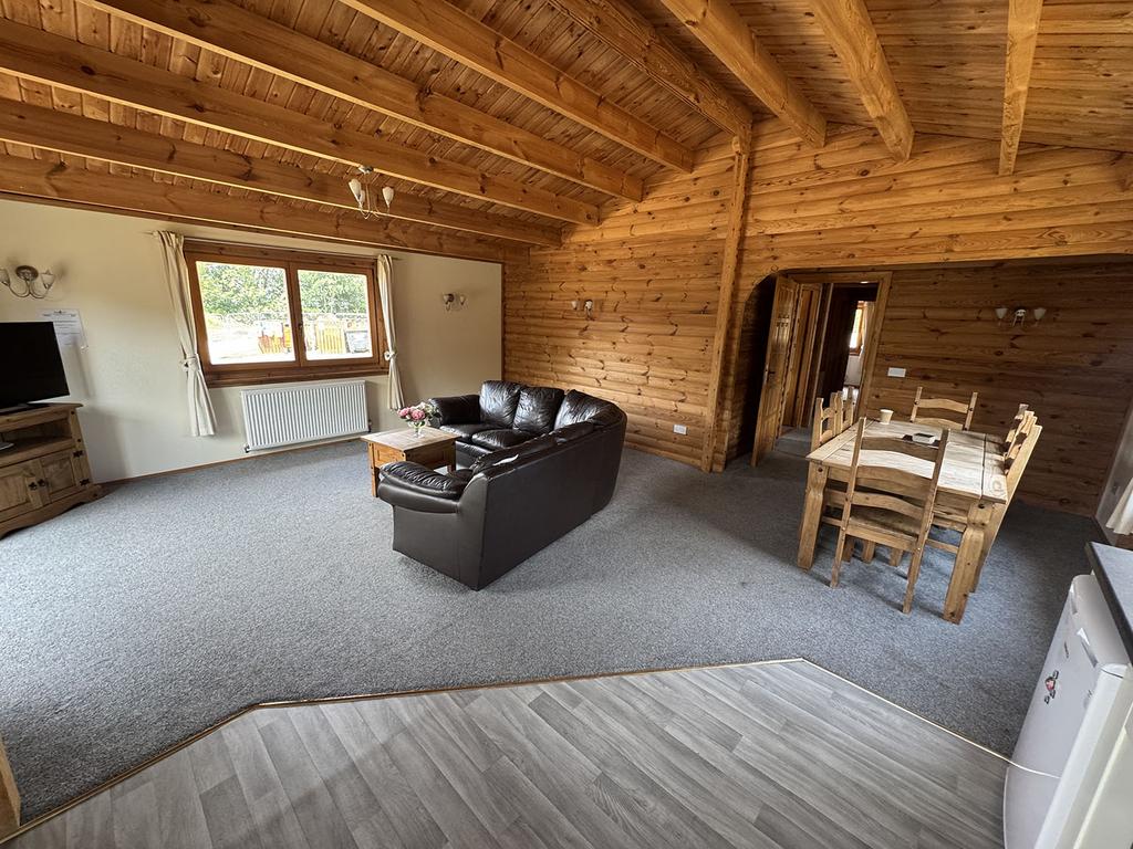 This spacious three-bedroom log cabin, built in 2006 by Pine Lodges UK, offers comfortable living in a peaceful country park setting. The lodge features a large open plan lounge and dining area with a fully fitted kitchen, creating a sociable space for relaxing or entertaining.