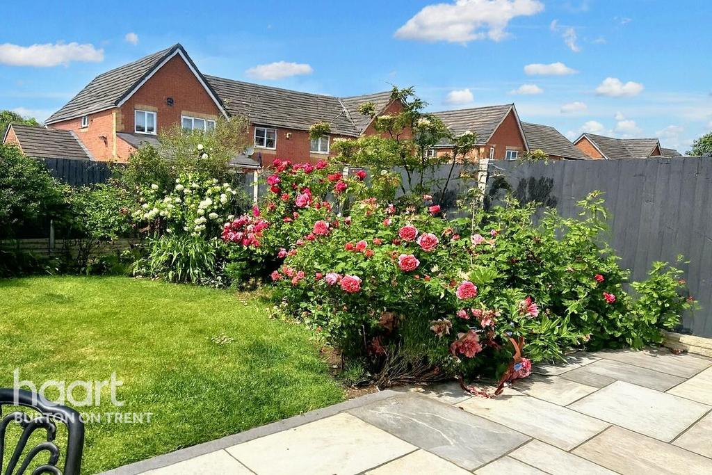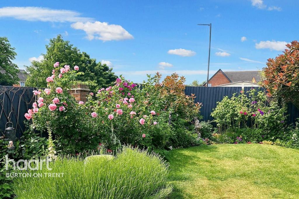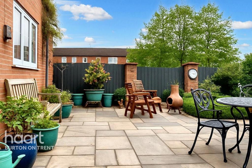 The rear garden has been beautifully landscaped, mainly laid to lawn with an extensive patio seating area.