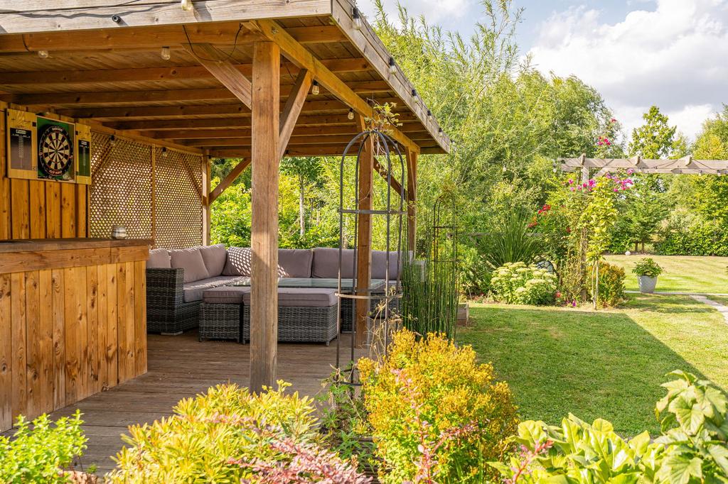 The gardens have been landscaped into ‘rooms’ incorporating lovely areas for various uses. The front garden has a formal symmetrical aesthetic with box hedging features. The rear garden continues the meticulous element of design which includes the large seating terrace complete with a water feature stream gently trickling to the below pond. Across the lawn, there is a timber constructed covered terrace complete with a fitted bar and WC, plus a 7-man self-cleaning Hydropool 670 to the side and a circular fire-pit seating area. A large lawn is positioned to the side and is an ideal open and secure area for children to enjoy. There is also a vegetable garden and polytunnel.