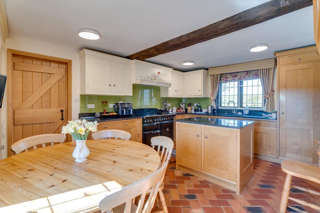 KITCHEN A stunning farmhouse kitchen with handmade Baker & Baker kitchen units under granite worktop, central preparation island, plenty of space for breakfast table and chairs, beautiful brick tile flooring and outlook to the front and rear. The property enjoys several reception rooms, with the foremost a generous