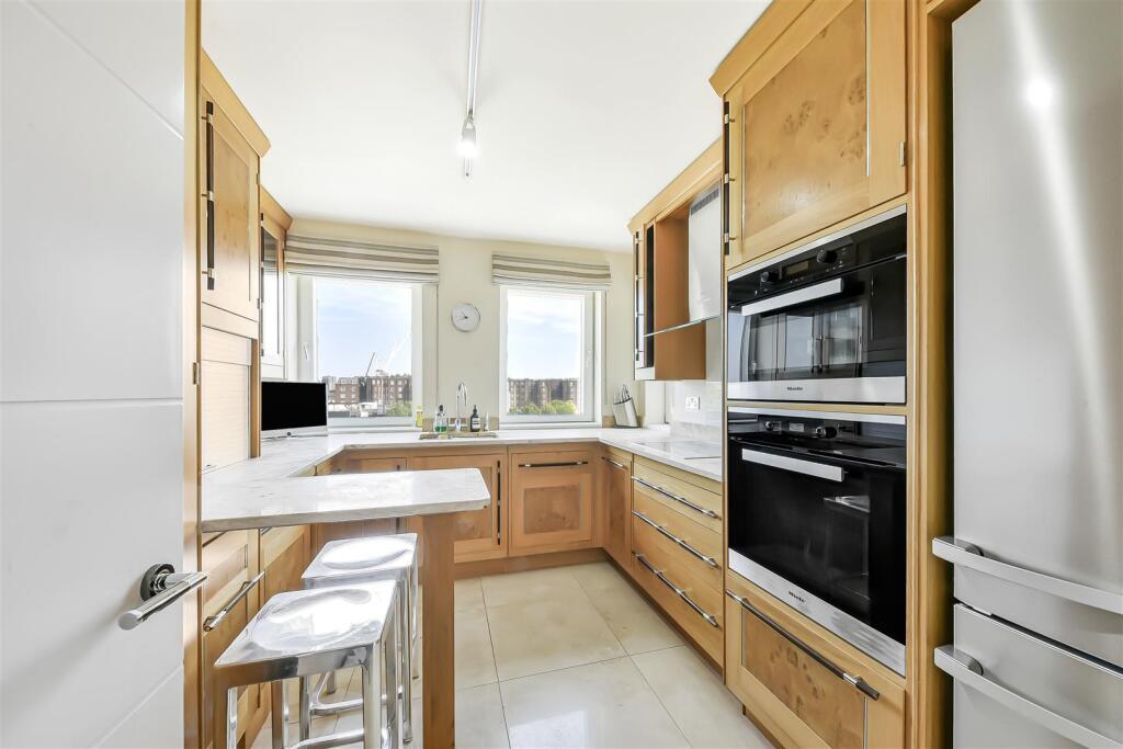 The property is finished to a high standard throughout, featuring wooden flooring and floor-to-ceiling windows that provide excellent natural light. The modern, fully-equipped kitchen is appointed with marble worktops, and there is generous storage integrated throughout.