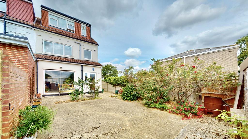 Ideal home for the larger family, spacious extended four bed two bath end of terrace house, popular North Hayes location, entrance porch, through lounge dining room, separate fitted kitchen, three first floor bedrooms & luxury fitted shower room/wc, large loft master bedroom with walk in wardrobe & en-suite shower room/wc, gas central heating, double glazed, mostly paved garden, 19’8 detached garage at rear via service road access to side, good access & scope for adding a garden room, off street parking for two cars, early viewing recommended.