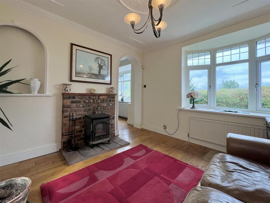 Lounge - 4.0 max 2.9 min x 6.7 max 1.7 min (13'1" max 9'6" - With double glazing bay window to front and further bay window to side, central heating radiator and feature brick wall with log burner.