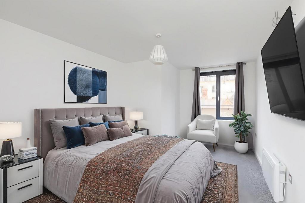The bedroom is a lavish size, with plenty of space for wardrobes and additional furniture.