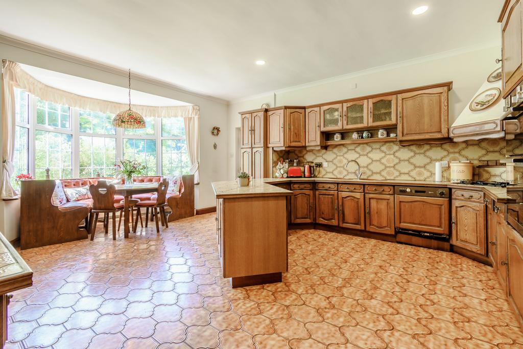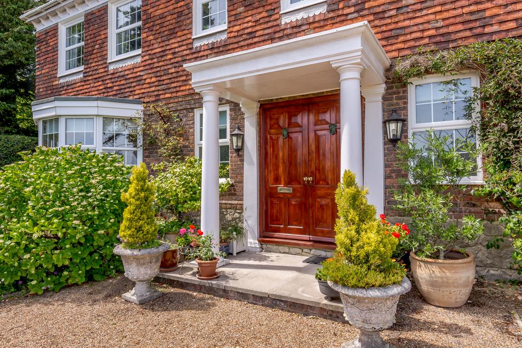 Constructed in 1981 Casale was designed for the current owner by a well-respected local architect and built to a high level of specification, using traditional materials including Kent ragstone for the foundation walling and clay tiles for the roof and upper floor elevations. You enter the property through a pair of panelled hardwood doors into an impressive double height galleried hall with Carrera marble floor. From the hall doors lead off to the principal ground floor rooms, all have high ceilings with traditional plaster cornicing and ceiling roses. The drawing room has an Inglenook style fireplace and a double aspect with view over the front garden and French doors opening onto the rear garden, the dining room looks out to the rear garden as does the kitchen / breakfast room, the study/snug looks over the front garden. Off the kitchen is a utility room and door to the garage. On the first floor a galleried landing leads to 5 double bedrooms and 2 bathrooms.