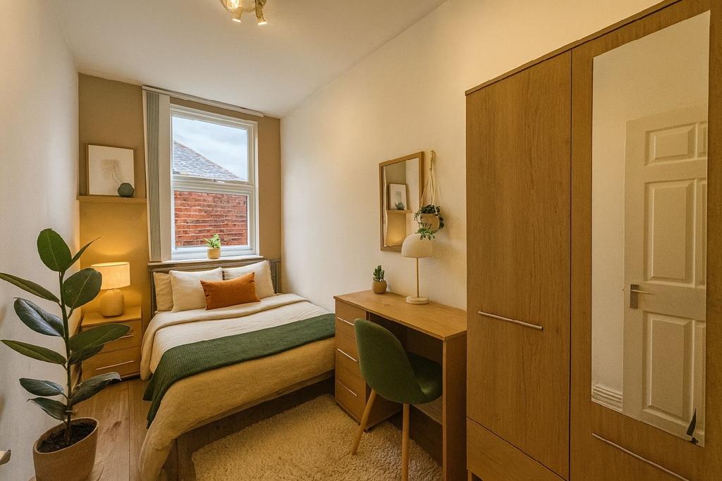 Each of the 4 spacious bedrooms comes fully furnished with a double bed, wardrobe, chest of drawers, and a desk—ideal for students or professionals alike.