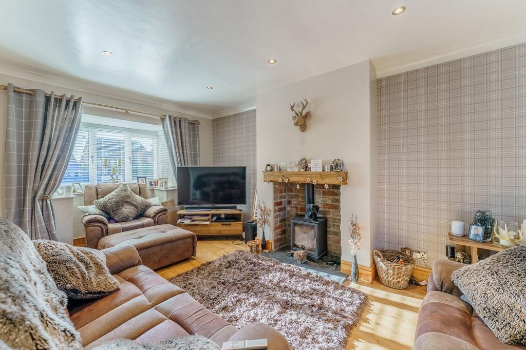 UPVC double glazed bay window to the front, wood stove in chimney breast with brick surround, double glazed sliding doors to the conservatory, solid oak double doors to the hallway, radiator.