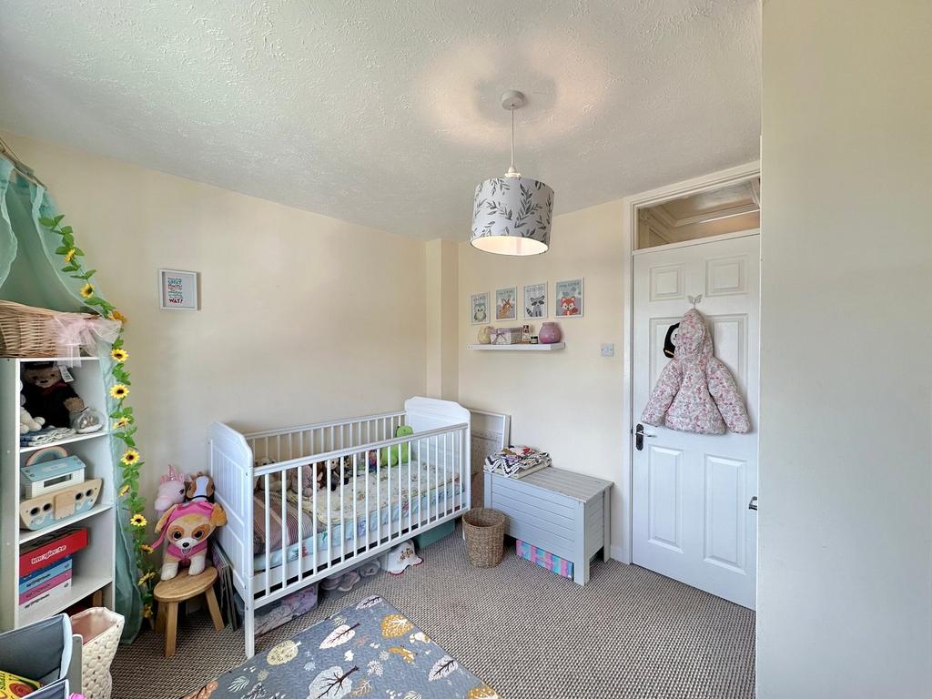 With carpet flooring, ceiling light point, double glazed window to the front elevation, power points, radiator, recess for potential fitted storage and stair bulk head with full size door and storage space.