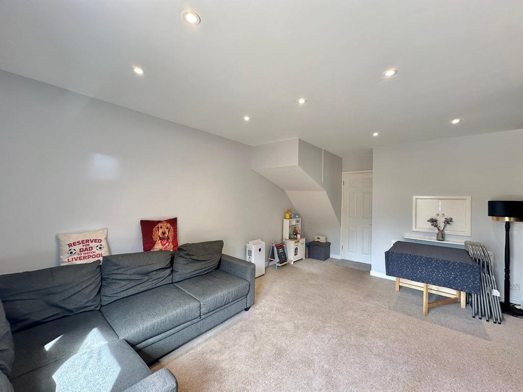With carpet flooring, spot lights with dimmer switch, radiator, wall mounted electric fire, TV and power points, double glazed french doors opening onto the rear garden, and understairs storage space.