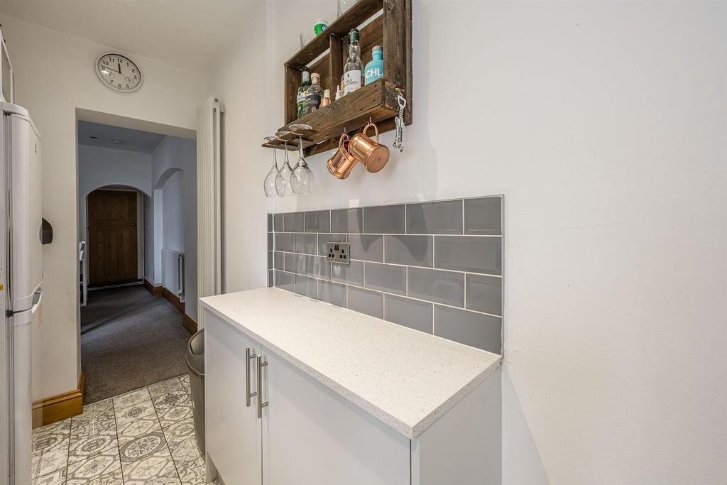 Kitchen - 3.68 x 1.82 (12'0" x 5'11" ) - Base units with electric oven & hob, plumbing for washing machine, sink and drainer, double glazed window to side, spot lights.