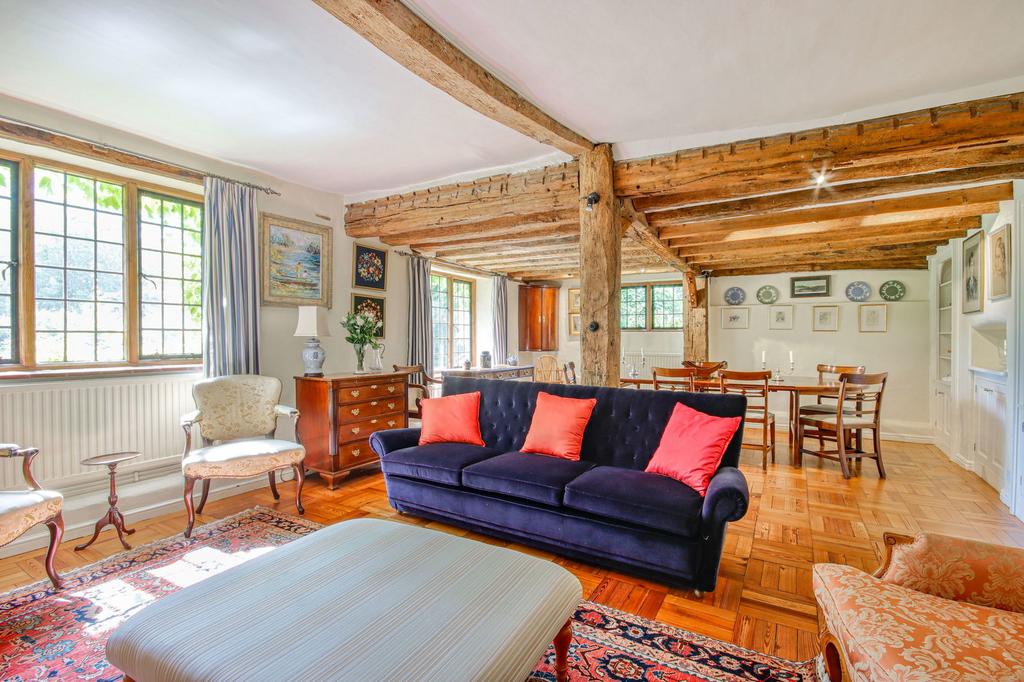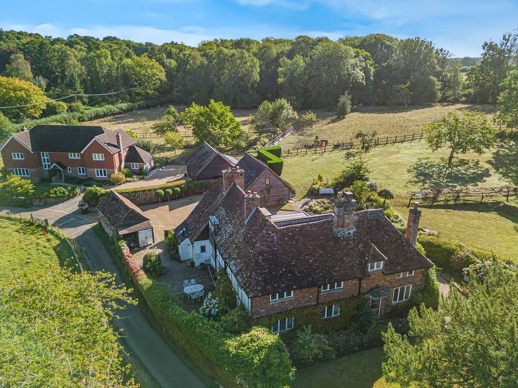 Price Range £1,400,000 to £1,500,000. A beautiful, charming and spacious Grade II listed house dating back to the 16th century, with later additions and exuding character and charm throughout. Arranged over two floors, the versatile accommodation seamlessly blends period craftsmanship with tasteful modern touches. This impressive residence boasts a substantial driveway, former stables used for storage, a large detached double garage and a room/home office above, offering scope for conversion into a self-contained annexe (subject to planning) and NO ONWARD CHAIN. Set within a plot of approximately 0.67 acres with beautiful gardens and grounds, the property enjoys pleasant views over Pigeons Green, woodland, and a paddock.