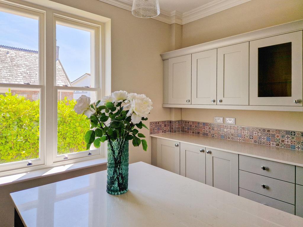 The ground floor offers a separate kitchen/dining room — perfect for entertaining — alongside a light and spacious lounge, both with direct access to the enclosed private garden, where you can enjoy sunset views and outdoor relaxation.