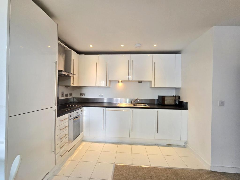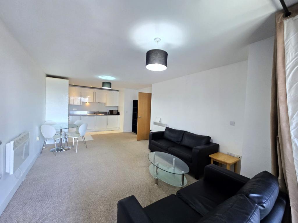 The apartment boasts a contemporary open-plan layout that seamlessly connects the kitchen and living area. Fitted with modern appliances, this space is perfect for stylish city living and entertaining. The spacious master bedroom includes the added comfort of a private ensuite shower room, while a second, well-appointed family bathroom adds further convenience. A long private balcony extends from the living space, offering a peaceful retreat with lovely views—ideal for enjoying morning sun or unwinding in the evening.