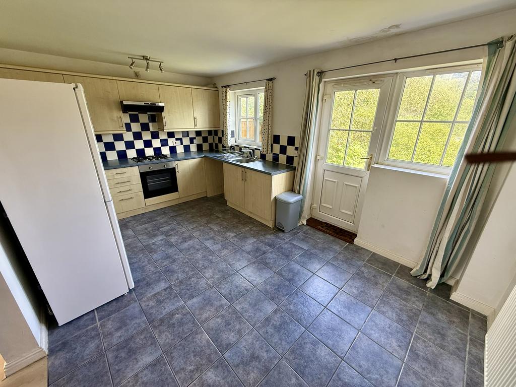 Tiled floor, radiator, 2 double glazed windows to rear, base and wall units, tiled splashbacks, single bowl and drainer sink unit with mixer taps over, plumbing for washing machine, four ring gas hob with filter hood over, electric oven, tiled splashbacks, two-double glazed windows to rear and double-glazed rear entrance door.