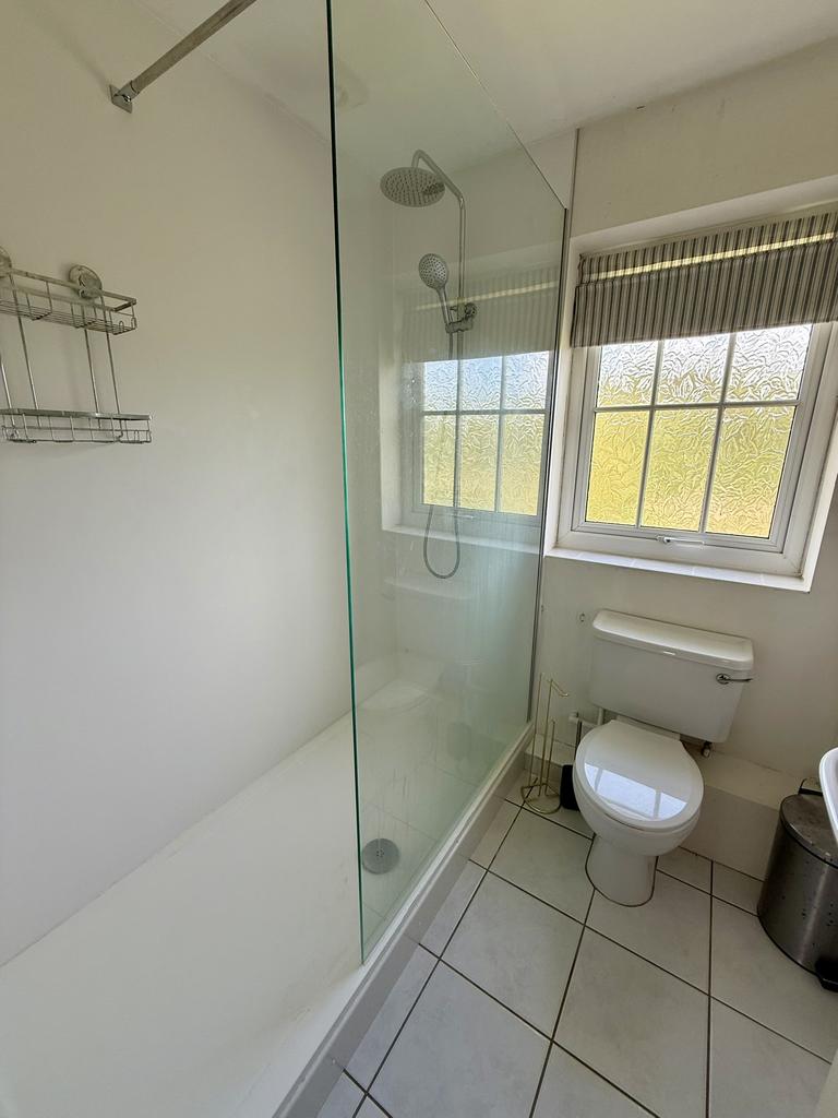 Tiled floor, double glazed window to rear, low level flush WC, pedestal wash and basin, tiled splashbacks, radiator, large shower cubicle with ‘mains’ operated shower with both shower spray and rain head, shower boarding to water sensitive areas and extractor fan.