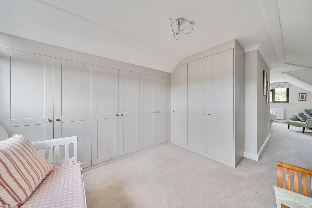 Leading off this are the comfortable and stylish double bedrooms. With an outlook to the countryside and garden the principal bedroom suite is a magnificent space with a huge dressing room which is fully fitted with wardrobes and an elegant dressing table. The bedroom enjoys wonderful views and has a newly refurbished en-suite shower room. There are 2 further spacious double bedrooms served by a chic fully tiled family bathroom with walk-in shower.