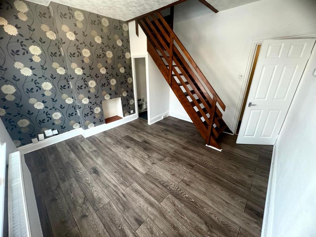 To the right of the hallway, you’ll find a spacious living room, perfect for relaxing or entertaining, with room for a sofa, TV, and more.