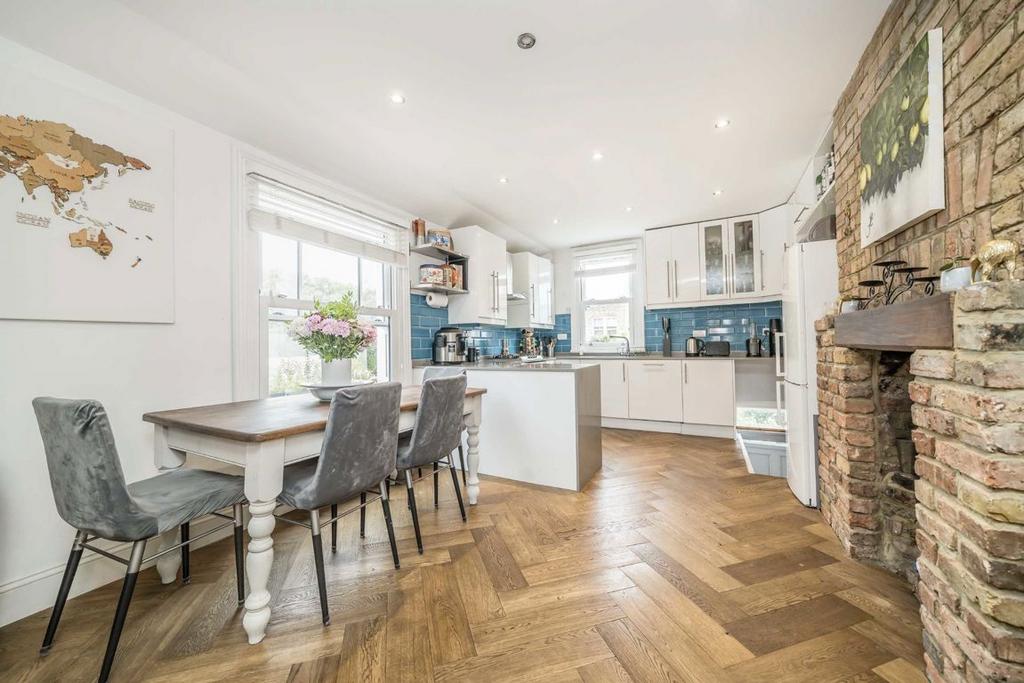A substantial and rarely available four double bedroom, two bathroom split-level Victorian maisonette, offering an impressive 1,461 sq ft (135 sqm) of internal space. This beautifully presented home benefits from both a large, private south-facing garden and a spacious roof terrace, making it an exceptional find in the heart of Tooting Bec. The property spans the upper floors of an attractive Victorian building and is arranged over two levels. The first floor comprises two generous double bedrooms, a stylish family bathroom with a separate WC, and to the rear, a full-width open-plan kitchen and sitting room. This bright and sociable space features a fully integrated kitchen with breakfast bar and ample room for a large dining area. There is a generous, private, south-facing garden. The second floor, created from a well-executed loft conversion, offers two further double bedrooms and a modern second bathroom. From here, access is provided to a large private roof terrace, offering additional outdoor space with open skyline views. The property is offered with a share of the freehold. Moring Road is one of Tooting Bec's most prestigious tree-lined streets, known for its attractive red-brick Victorian homes and strong community feel.