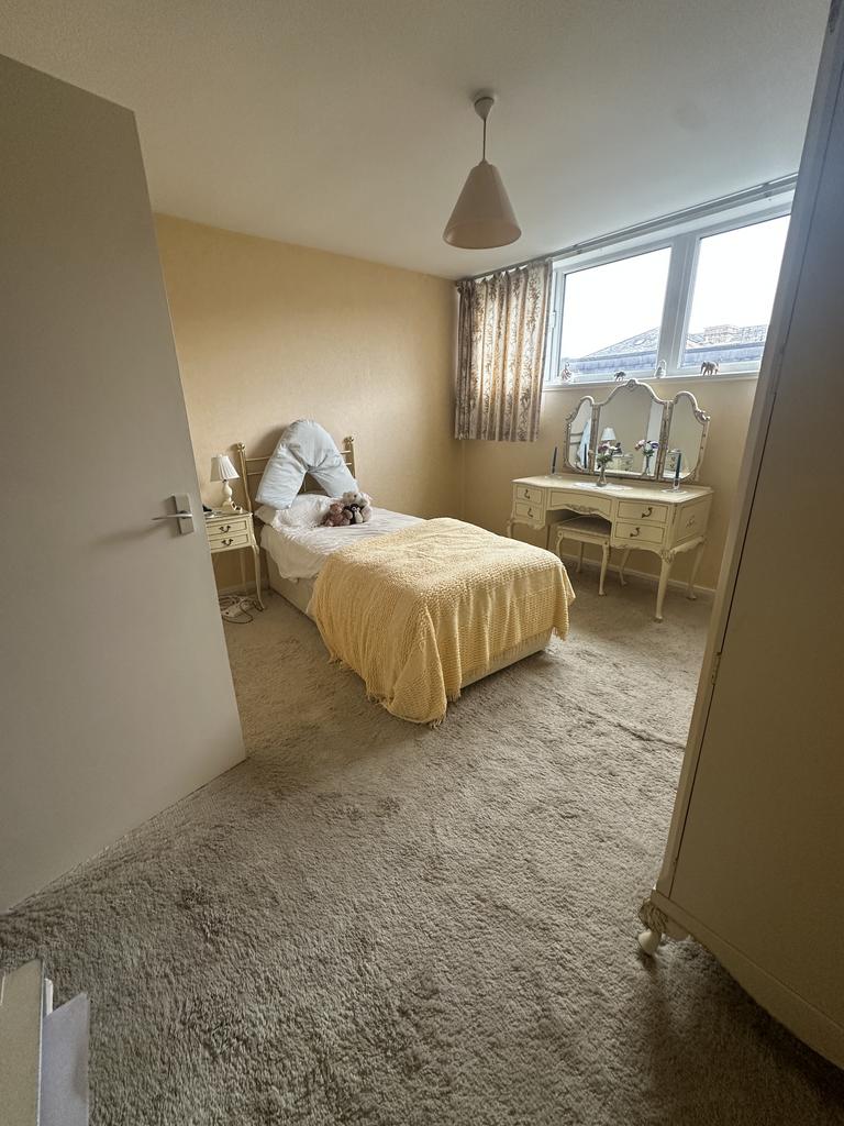 The accommodation comprises a generous living room, a large eat-in kitchen with ample space for dining, and plenty of built-in storage throughout. Upstairs, the property benefits from two large double bedrooms, both offering good natural light and flexible layout options.