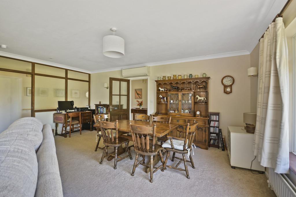 Sitting/Dining Room: Double aspect room with twin double glazed windows to the front and window to the side. Brick fire surround on slate hearth. Obscured glazed panel through to kitchen/breakfast room. TV point. Coved ceiling. Fujitsu air conditioning unit. Space for dining table.