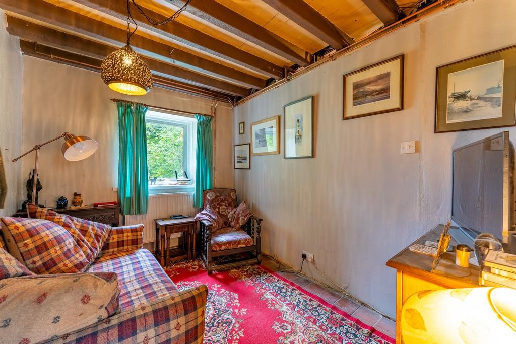 Upstairs, two bedrooms provide peaceful retreats, with the principal bedroom offering generous proportions and wonderful views across the land. The second bedroom, ideal for a study, or creative space, sits alongside the bathroom. Throughout, the cottage retains the intimacy and character of a traditional country home, while offering scope for modernisation or sympathetic extension if desired.